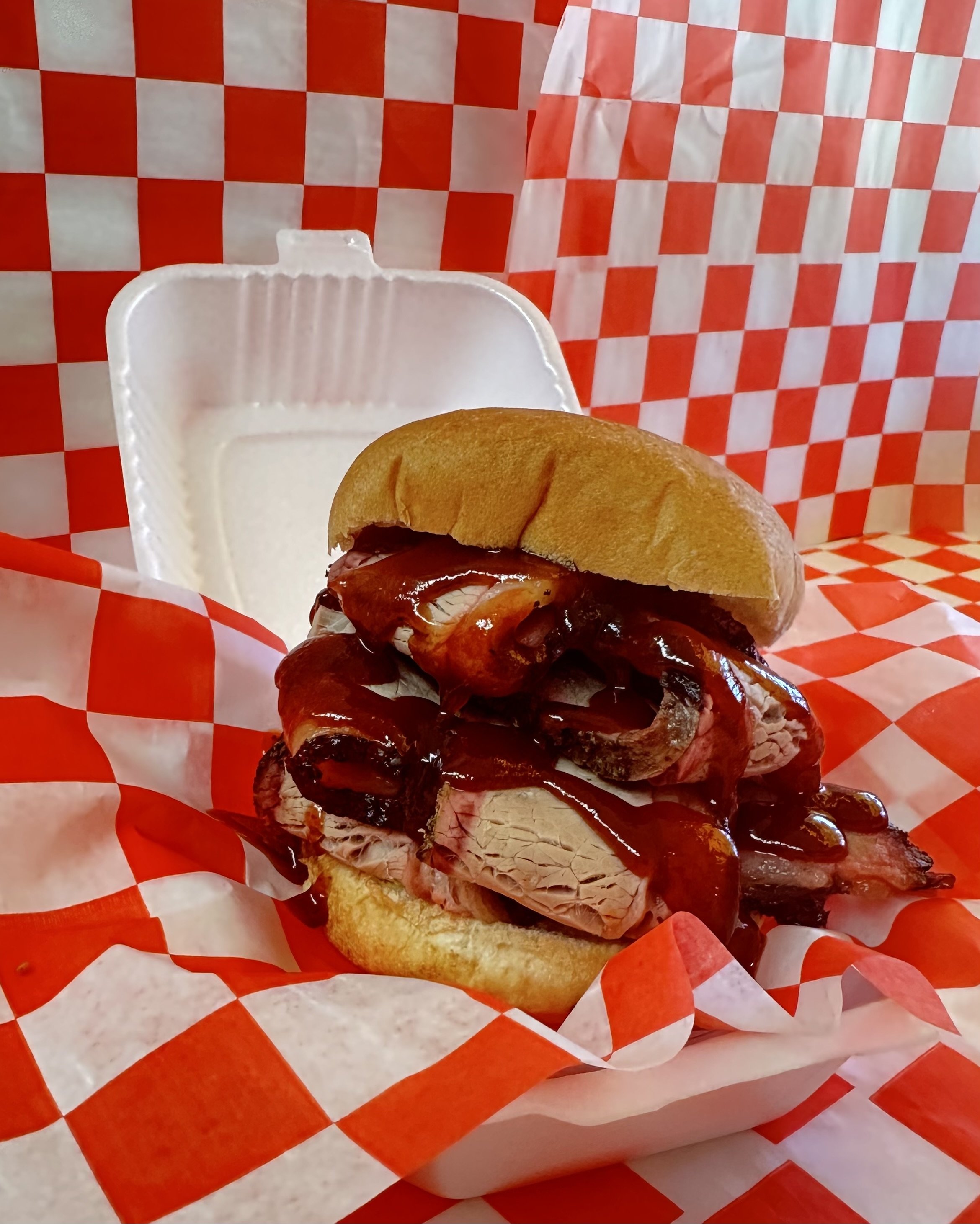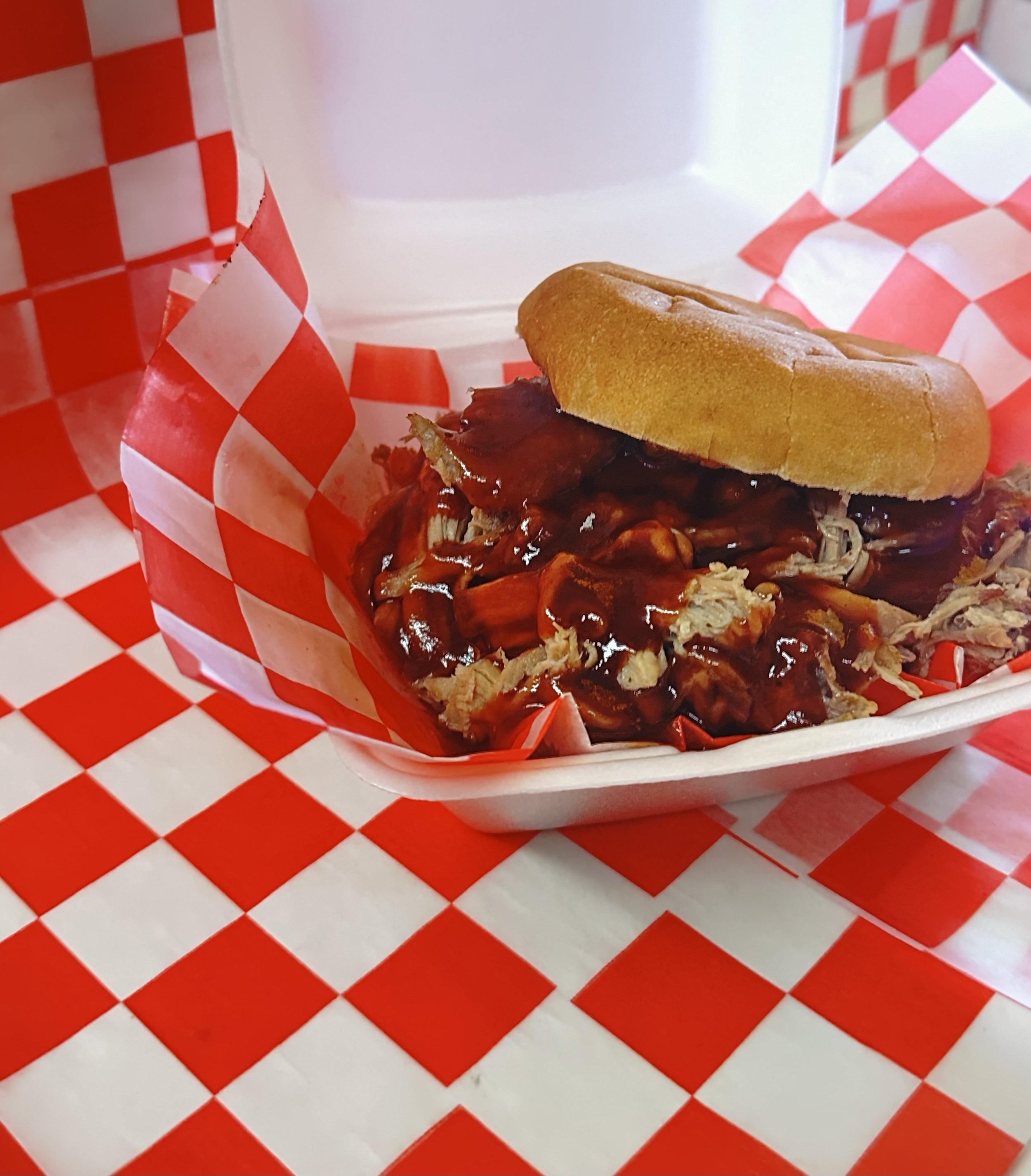 All of our sandwiches are served on a kaiser roll with BBQ sauce on the top. Any sandwich can be made a basket with two sides for an additional cost.